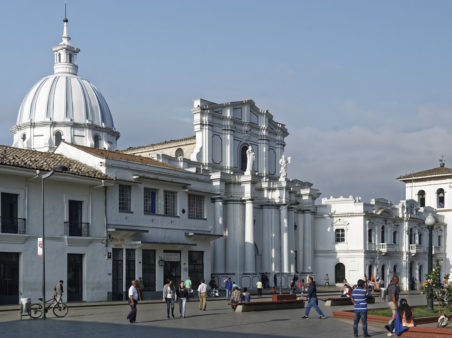 Reise nach Popayán, der "Weißen Stadt". Spazieren Sie durch kopfsteingepflasterte Straßen, bewundern Sie Kirchen aus der Kolonialzeit und besuchen Sie historische Sehenswürdigkeiten wie den Caldas-Park und den Uhrenturm. Genießen Sie lokale Spezialitäten wie Tamales de Pipián.