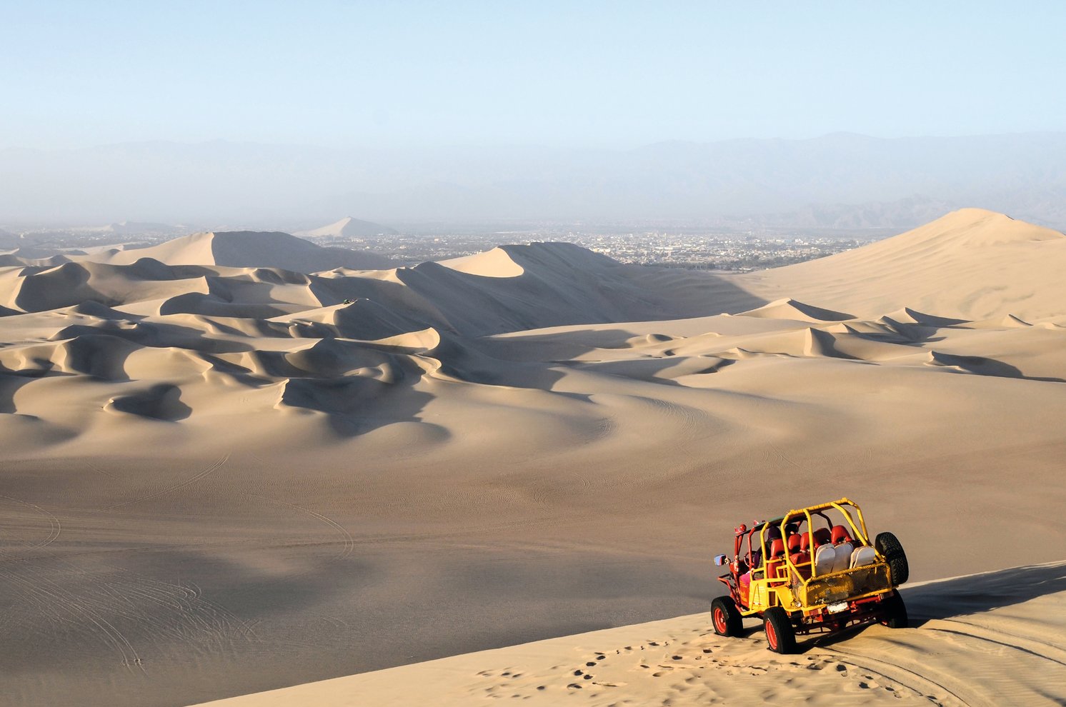 Eine Panoramafahrt entlang der Küste bringt Sie Richtung Süden, bis sich plötzlich eine Oase inmitten goldener Sanddünen öffnet: Huacachina. Palmen spiegeln sich im Wasser der Lagune, während hohe Dünen das kleine Dorf umgeben. Hier erwartet Sie eine einzigartige Wüstenkulisse - fast surreal. Der Nachmittag steht zur freien Verfügung, um die Atmosphäre zu genießen oder erste Dünen zu erklimmen.