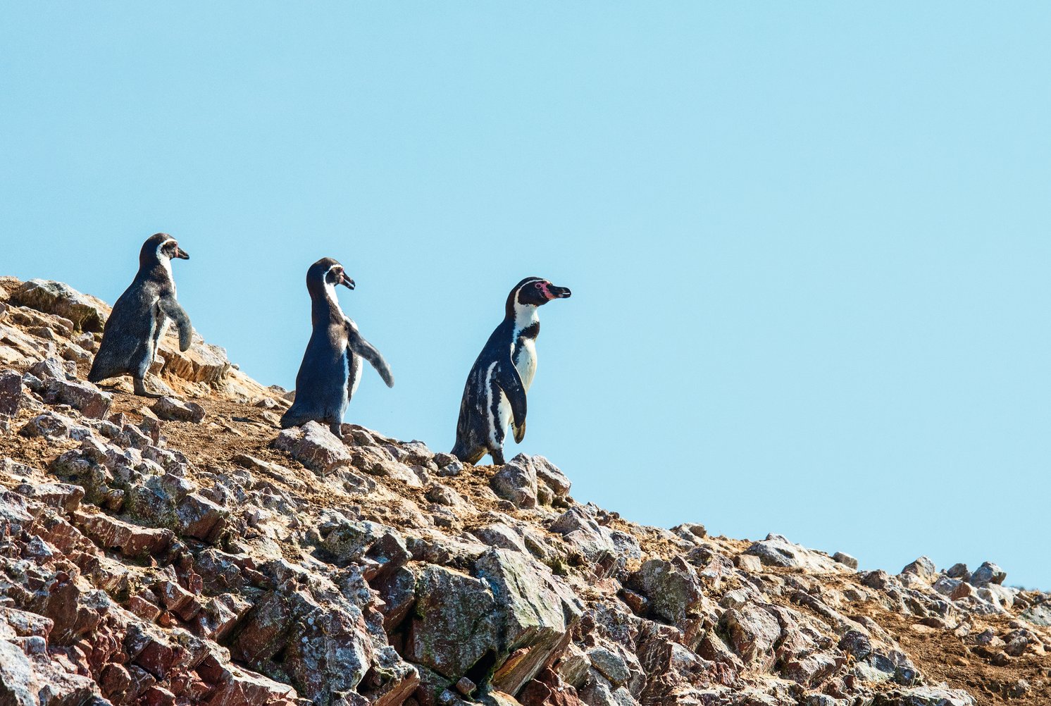 Am Morgen fahren Sie an die Pazifikküste nach Paracas. Mit dem Boot geht es hinaus zu den beeindruckenden Ballestas-Inseln, die oft als "kleine Galápagos-Inseln Perus" bezeichnet werden. Seelöwen sonnen sich auf den Felsen, Humboldt-Pinguine bewegen sich zwischen den Klippen und tausende Seevögel kreisen über dem Wasser - ein lebendiges Naturschauspiel inmitten rauer Küstenlandschaft. Anschließend erkunden Sie das Paracas-Nationalreservat mit seinen weiten Wüstenflächen und spektakulären Steilküsten, wo Ocker-, Rot- und Sandtöne auf das intensive Blau des Ozeans treffen.